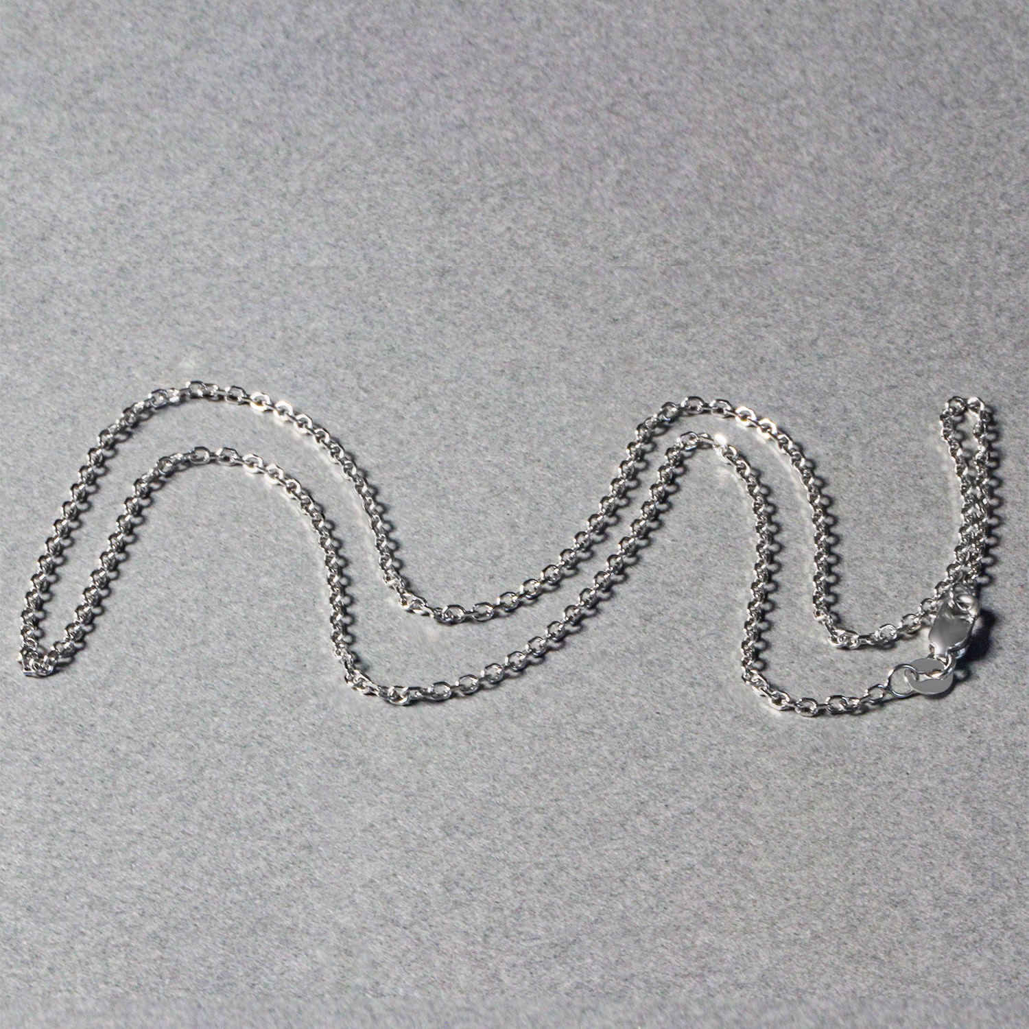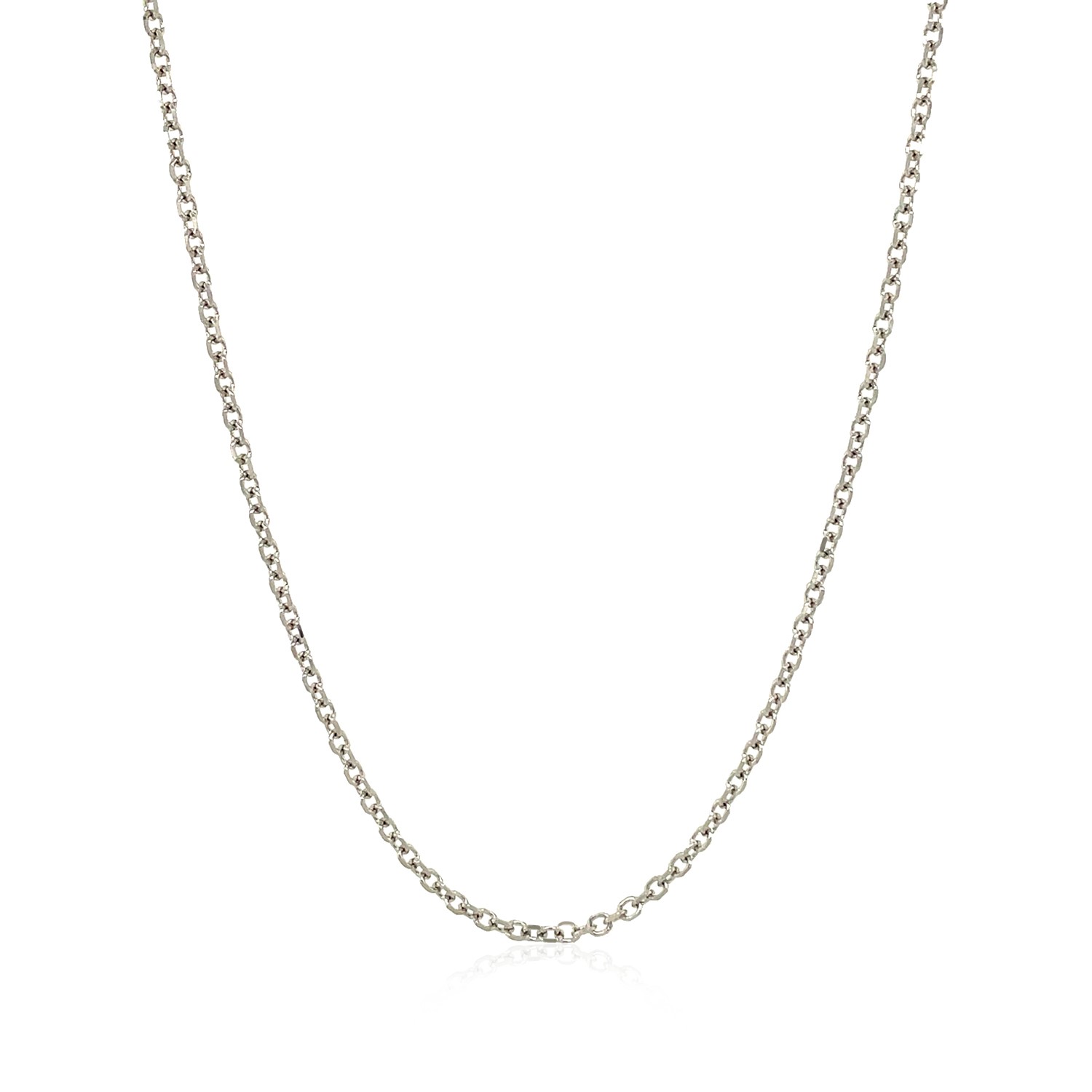 This diamond cut cable link chain comes in 14k white gold and has a width of 1.5 millimeters.