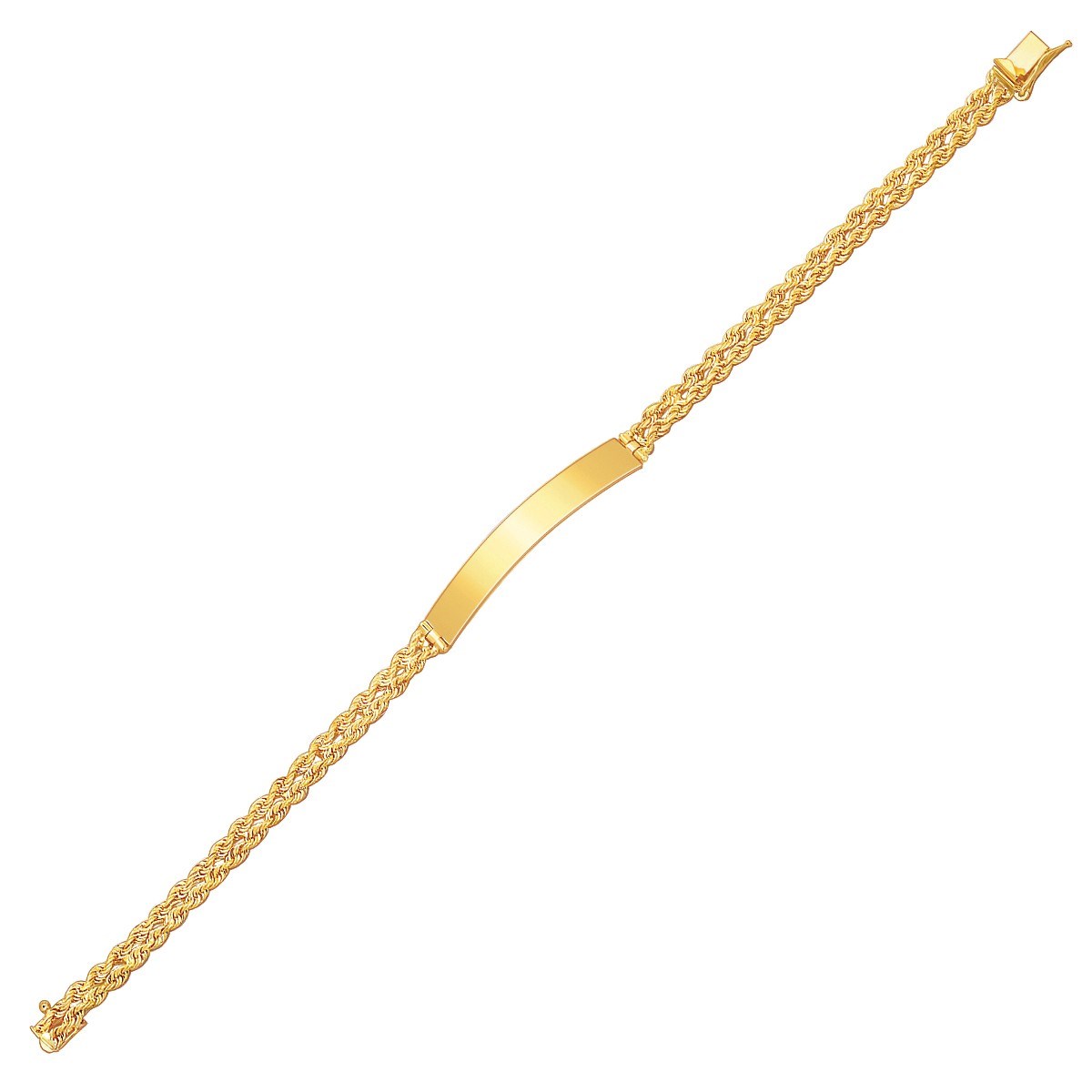 Reveal your secret identity! Our expertly crafted ID bracelet features a generous highly polished bar, ready for your personal engraving. The hinged links beautifully blend with the double rope chain. 7 1/2 inches in length, the box clasp closure keeps it secure.