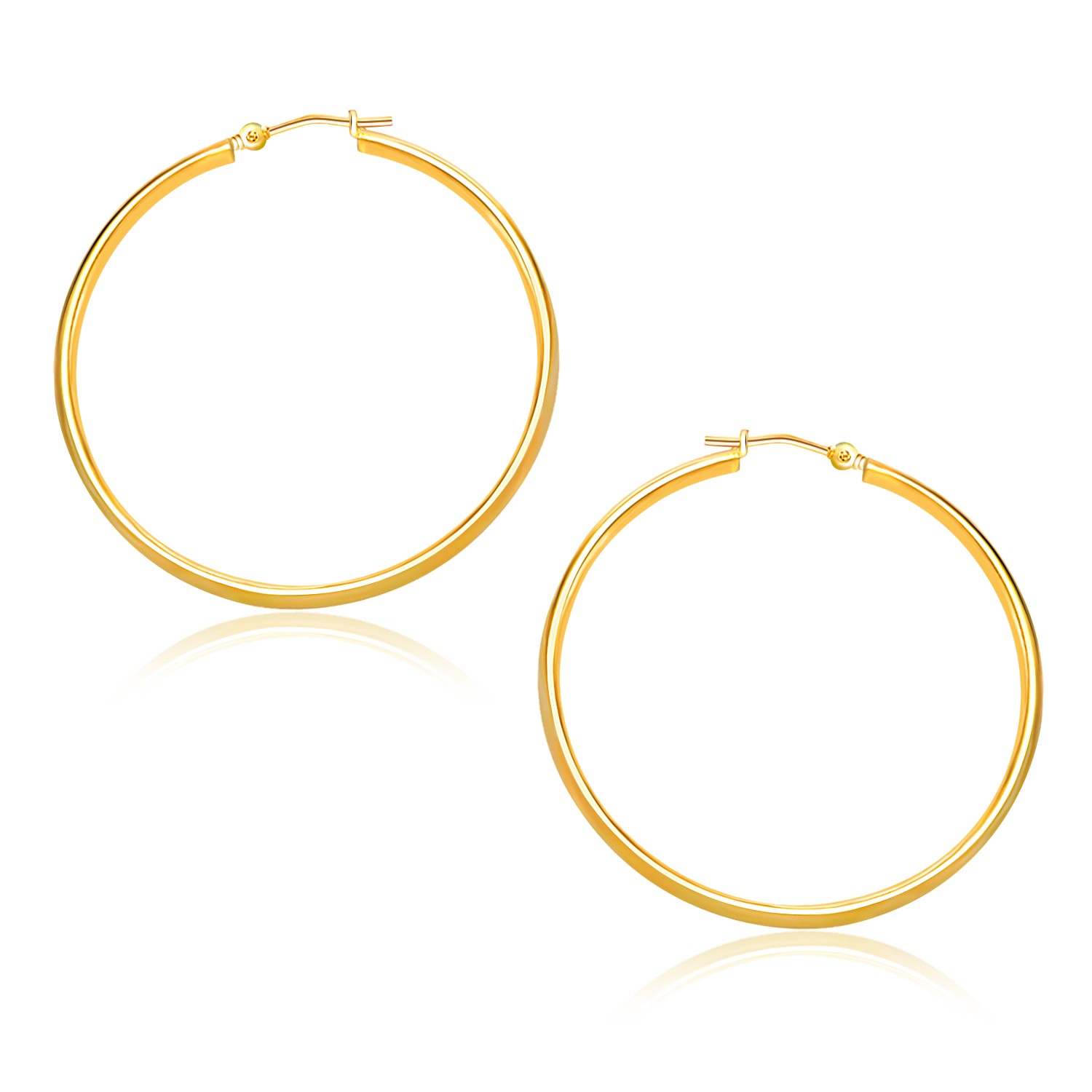 These timeless hoop earrings are crafted in 14k yellow gold and measure 30 millimeters in diameter, featuring a snap lock backing.
